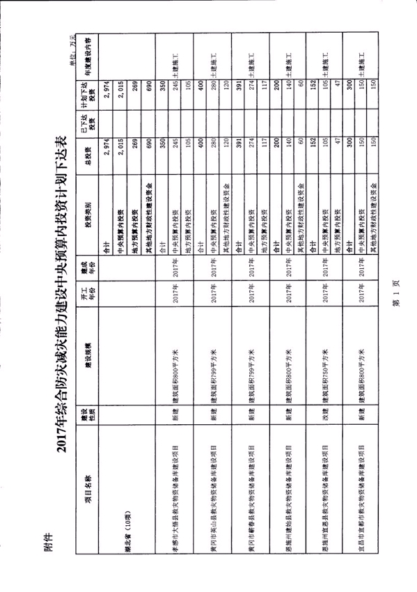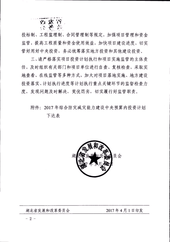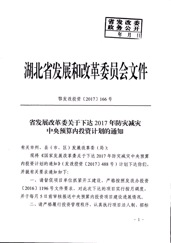 省發改委關于下達2017年防災減災中央預算內投資計劃的通知