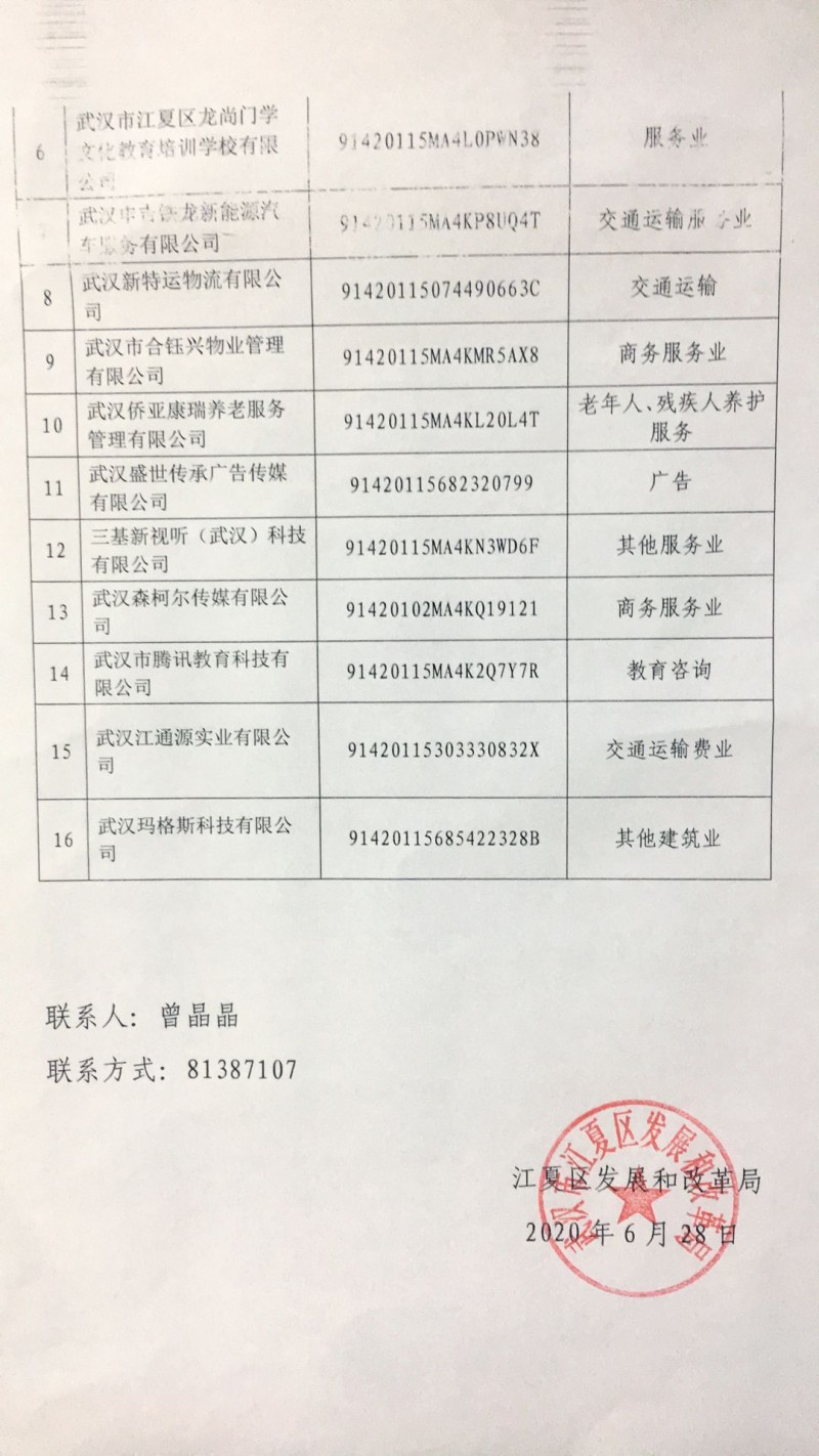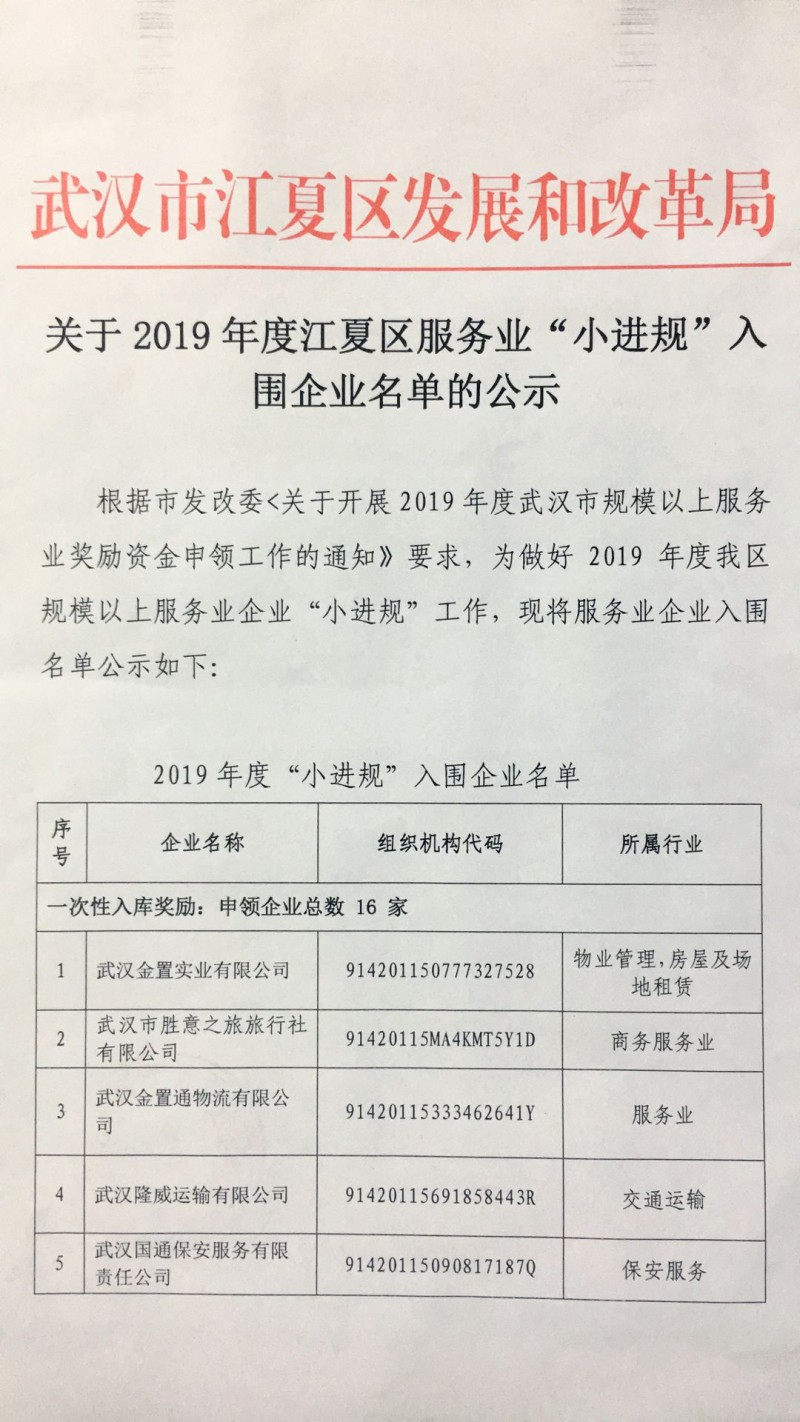 關于2019年度江夏區服務業“小進規”入圍企業名單的公式