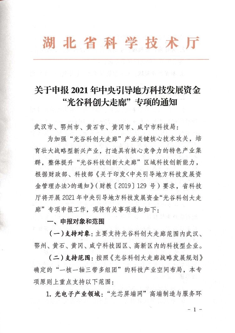 關于申報2021年中央引導地方科技發展資金“光谷科技創大走廊”專項的通知