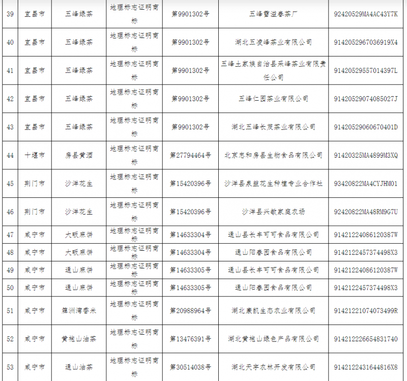 根據(jù)《地理標(biāo)志專用標(biāo)志使用管理辦法(試行)》和《國(guó)家知識(shí)產(chǎn)權(quán)局辦公室關(guān)于做好地理標(biāo)志專用標(biāo)志使用管理有關(guān)工作的通知》(國(guó)知辦函保字〔2020〕250號(hào))有關(guān)規(guī)定,經(jīng)國(guó)家知識(shí)產(chǎn)權(quán)局地理標(biāo)志保護(hù)數(shù)據(jù)管理系統(tǒng)核驗(yàn),省知識(shí)產(chǎn)權(quán)局對(duì)我省符合地理標(biāo)志專用標(biāo)志使用要求的“湖北盤龍國(guó)瑞醫(yī)藥有限公司”等2家地理標(biāo)志保護(hù)產(chǎn)品生產(chǎn)者和“武漢市蔡甸區(qū)萬(wàn)順農(nóng)產(chǎn)品專業(yè)合作社”等51家地理標(biāo)志證明商標(biāo)被許可人名單(見附件)予以公布,專用標(biāo)志下載口令以紙質(zhì)件形式統(tǒng)一下發(fā)至各市(州)知識(shí)產(chǎn)權(quán)局。
