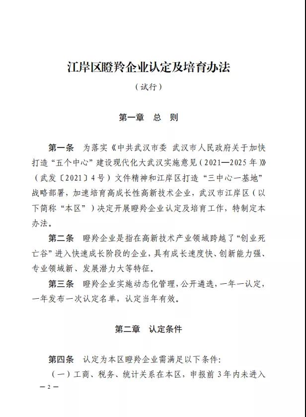 江岸區發布瞪羚企業認定及培育辦法(試行)的通知